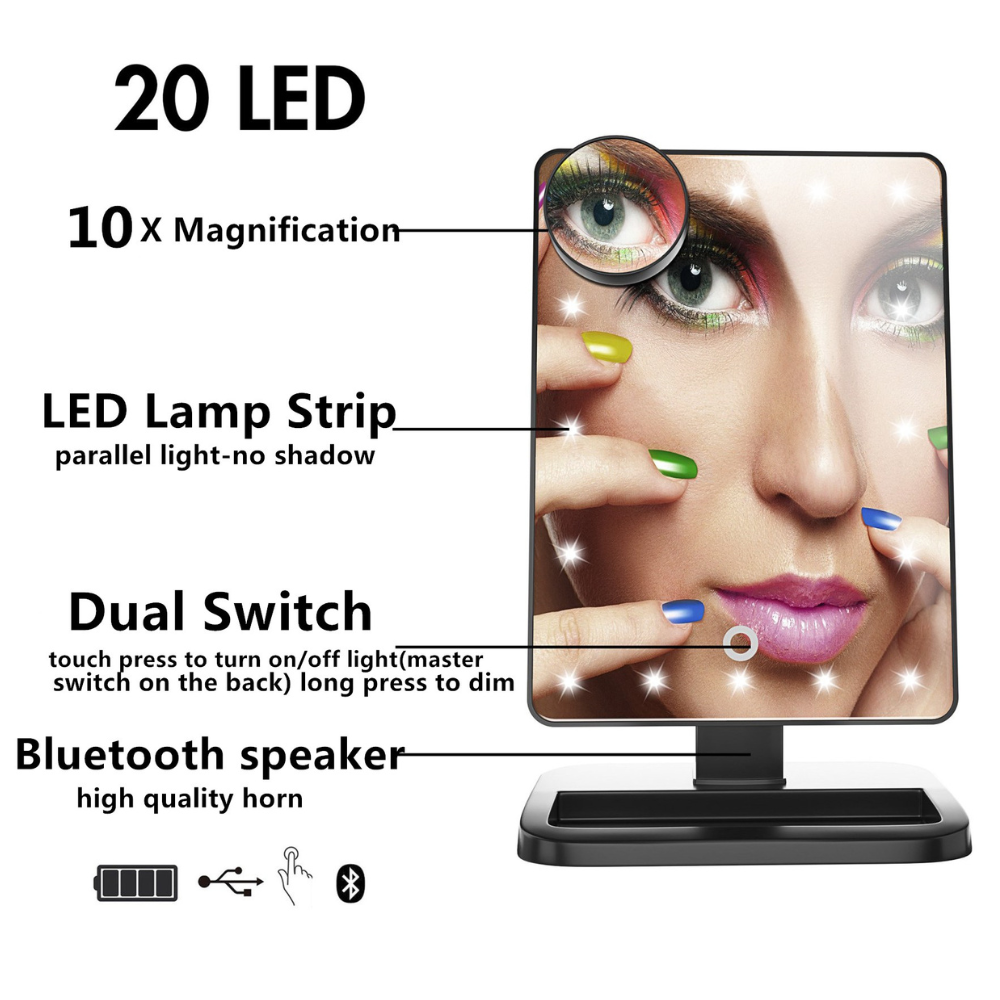 Touch Screen Makeup Mirror With LED Bluetooth Speaker